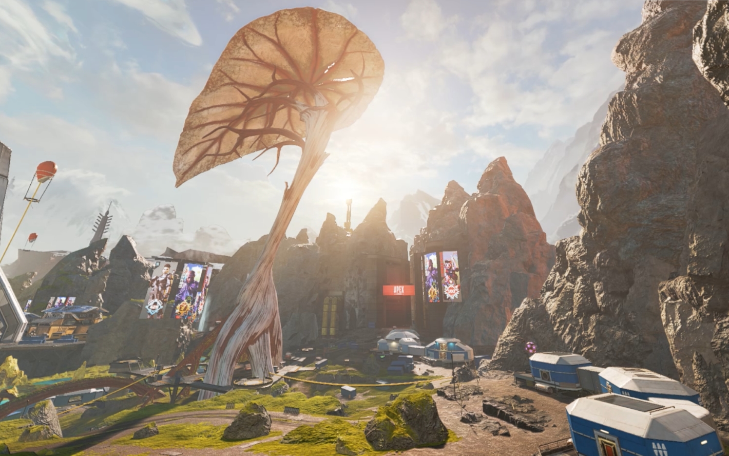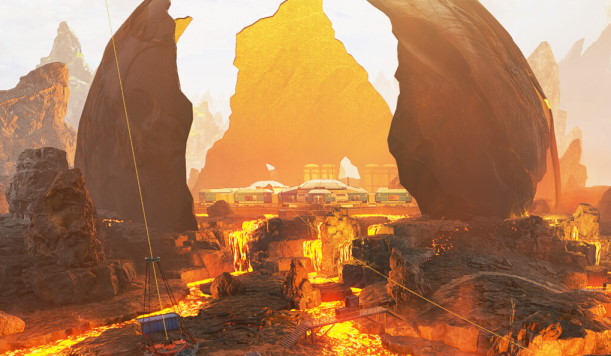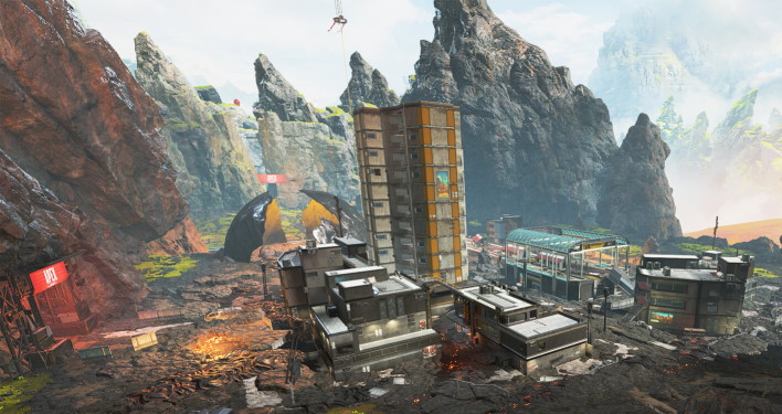 | ミラージュボヤージュ | ミッドティア | S3中のイベント「ホロデーバッシュ」で追加。スイッチを押すと音楽と共に花火が打ち上がり、レアアイテムの入ったカーゴが出現する。S6でスプリングズエンドに改築された。S7でKINGS CANYONに出現した後、S9でパーティークラッシャーに墜落した。公式 ![]() | トリオモードで人気の降下地点。激戦区となる。 | |