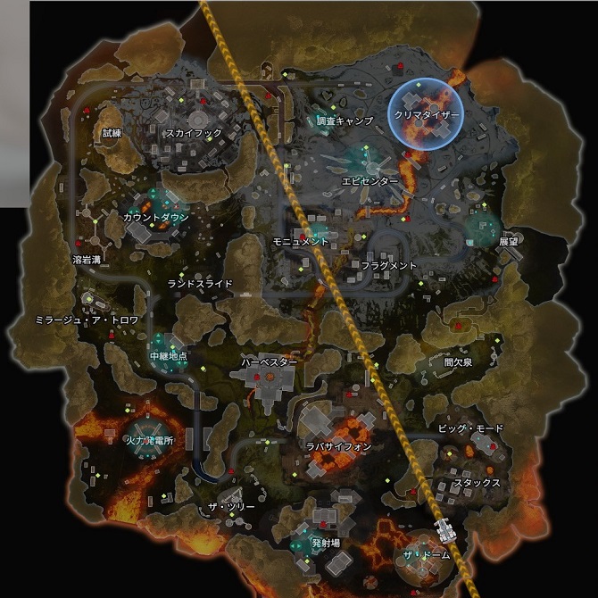 | S10開始時 | 2021/08/04 | マップ全体に氷・雪が増え、空が明るくなった。 仕分け工場 → ラバサイフォン 列車庫 → ランドスライド 精錬所 → クリマタイザー エピセンターの東 → フィッシャークロッシング フラグメントからクリマタイザーまで溝が拡張。 展望に置いてあるタンクが一つ減る。 間欠泉のトンネルから展望への通路が増える。 | World's Edgeのマップアップデートで惑星が震撼![]() | |