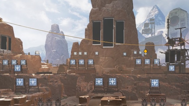 アイテム置き場から見て右端の洞窟の屋根にあるキャットウォークでアクティブに出来ます。到達するにはパスファインダーなど一部レジェンドの移動能力が必要です。